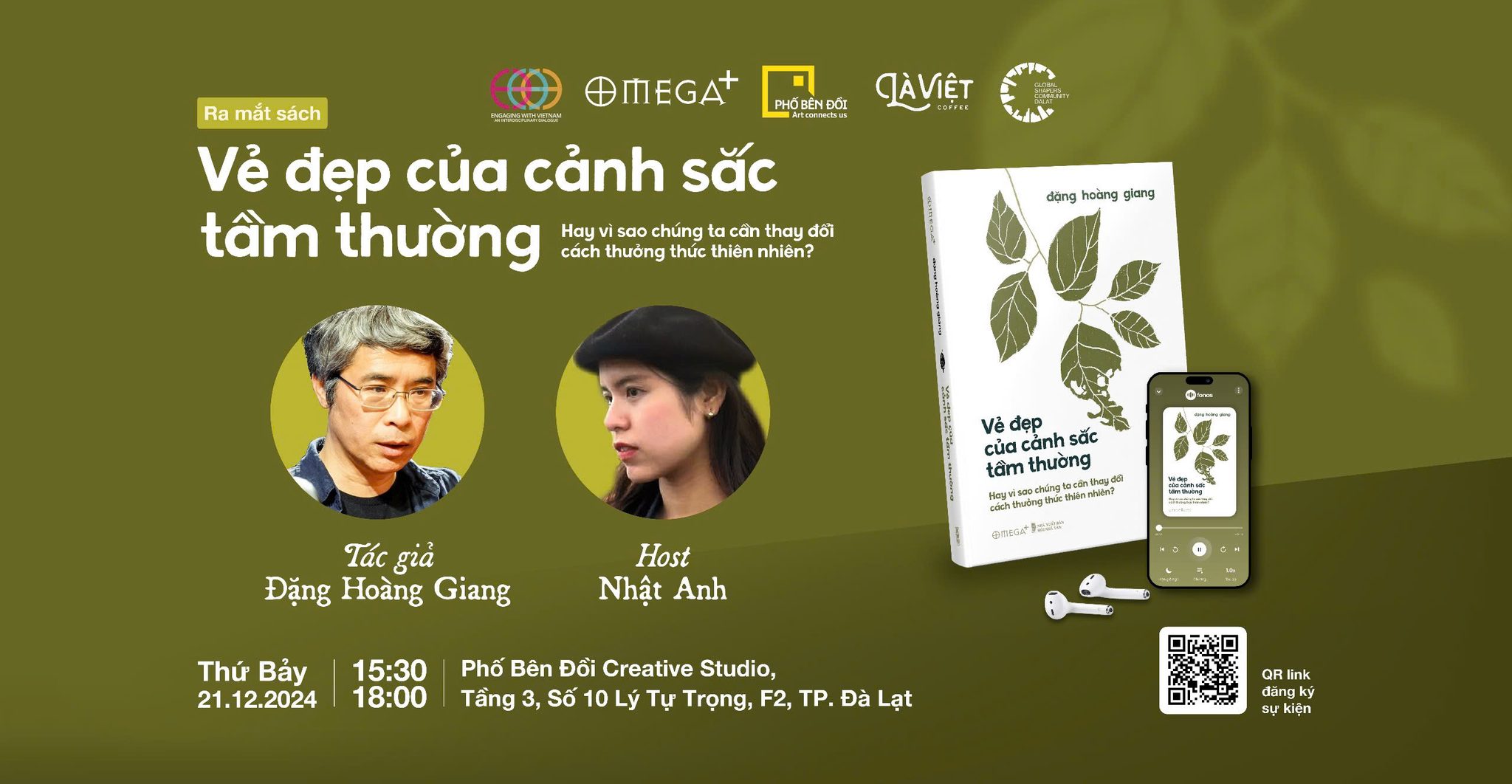 Buổi ra mắt cuốn sách “Vẻ đẹp của cảnh sắc tầm thường” diễn ra lúc 15h30 – 18h00 ngày 21/12/2024 tại Không gian sáng tạo Phố Bên Đồi, với sự góp mặt của tác giả Đặng Hoàng Giang hứa hẹn thu hút sự quan tâm của nhiều độc giả yêu sách. Không chỉ nổi tiếng với những tác phẩm phi hư cấu về văn hóa và xã hội, tác giả Đặng Hoàng Giang còn là nhà hoạt động xã hội tích cực trong việc nâng cao nhận thức cộng đồng về các vấn đề môi trường và sức khỏe tinh thần, phá bỏ định kiến và kỳ thị.